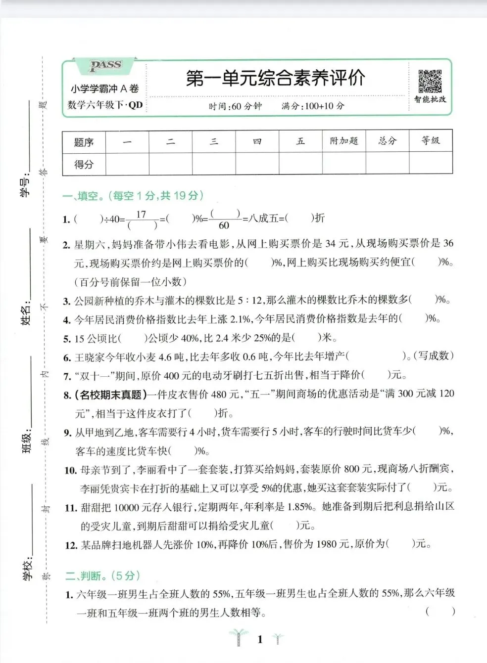 《小学学霸冲A卷》2026春青岛版数学456年级上下册丨PDF电子版,可下载打印,链接:https://pan.quark.cn/s/1cf30042d745