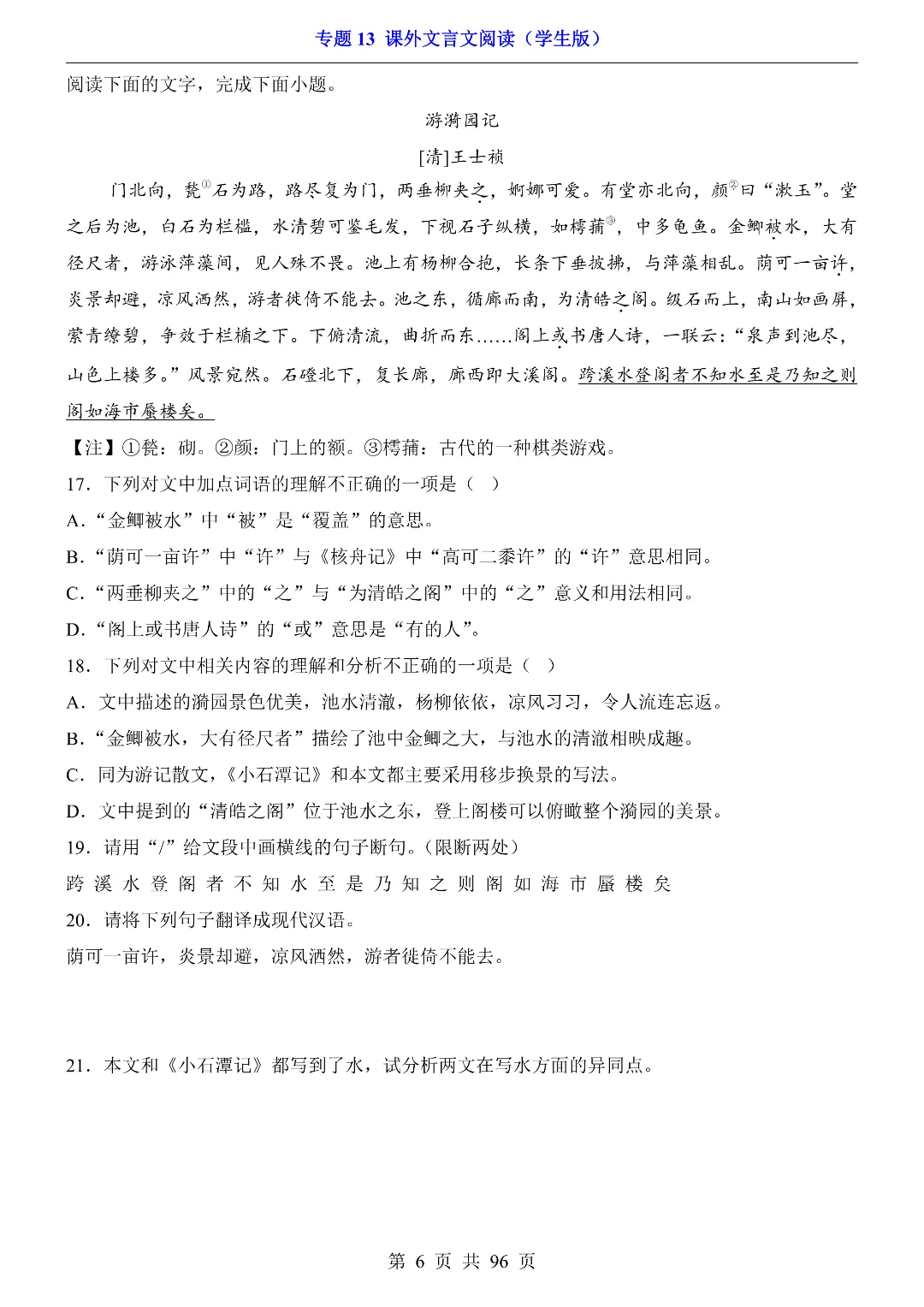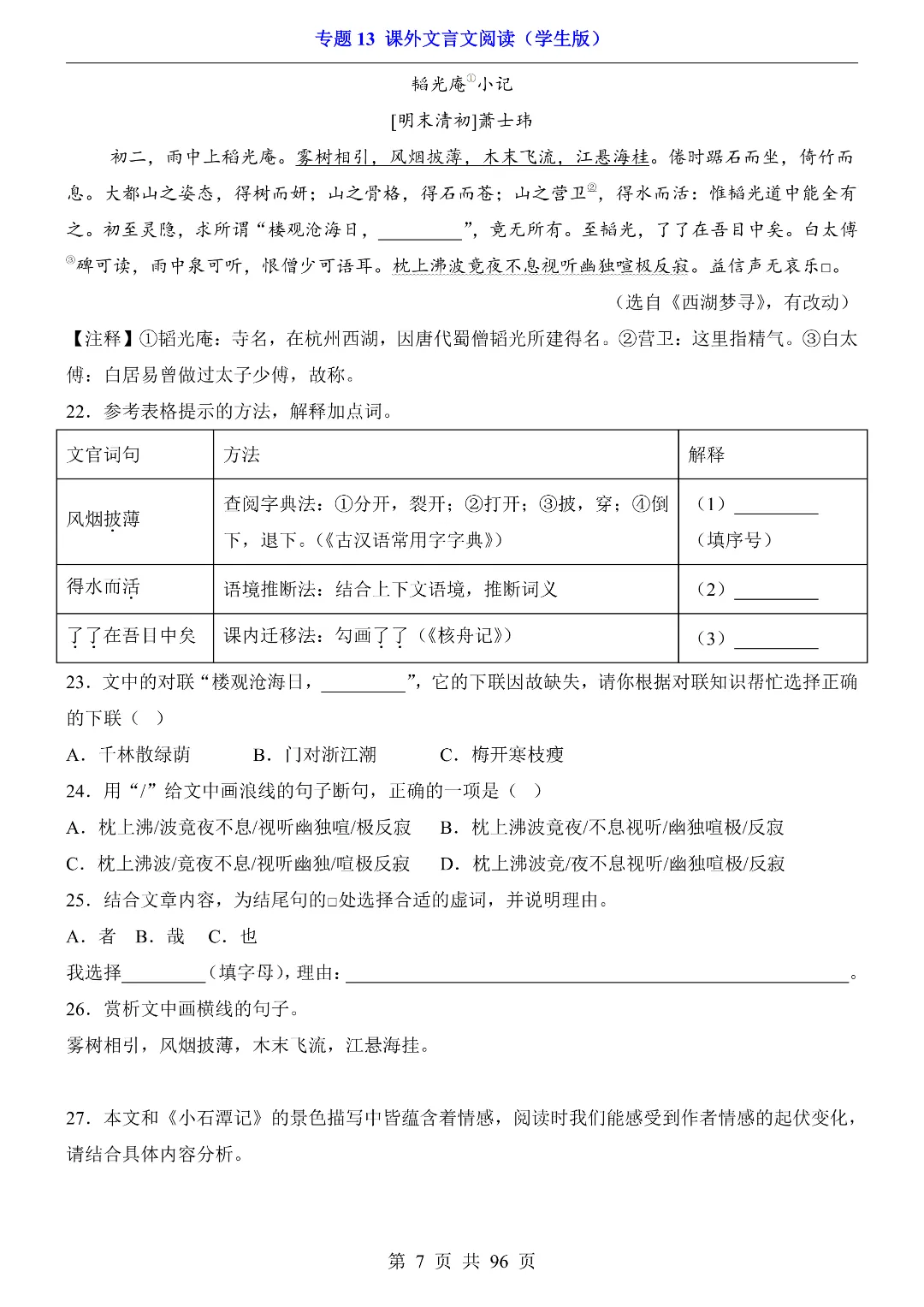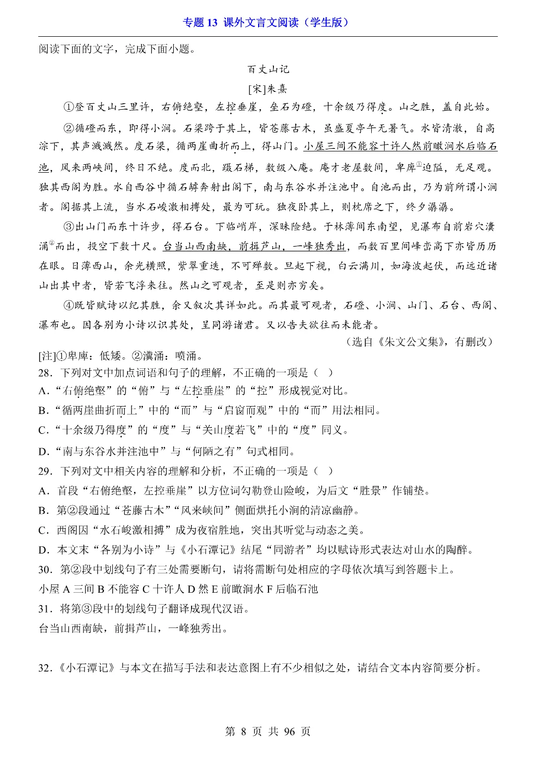 今日给家长数学朋友们分享的是:26年春新八年级初二下册部编版语文《期中考试·课外文言文阅读专项练习》含答案解析‖电子版可打印