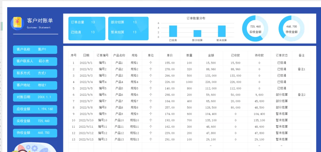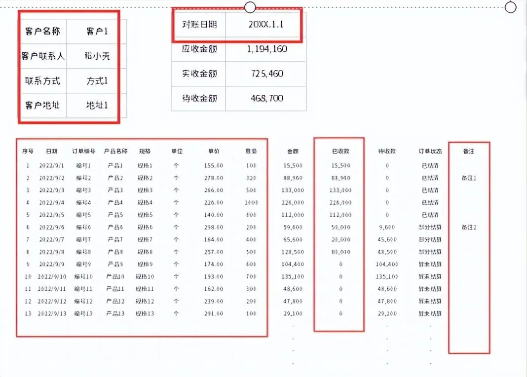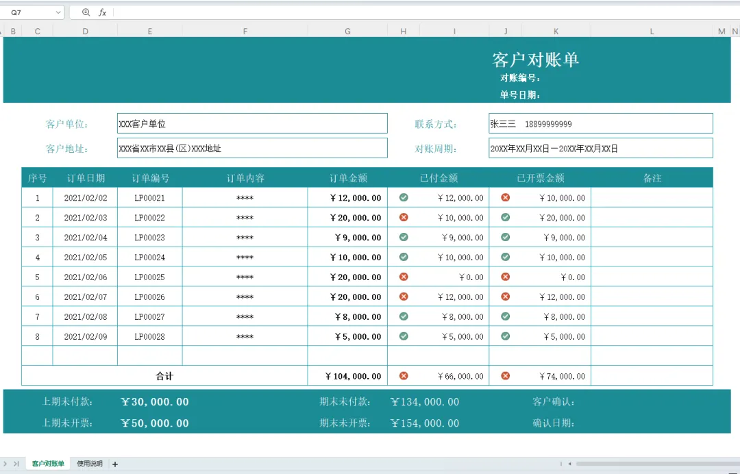 客户对账单模板