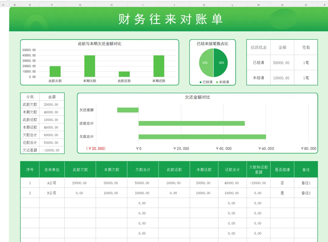 月末对账速存:全自动Excel应收应付对账管理系统,含常用全自动对账单模板,财务套用自动对账!