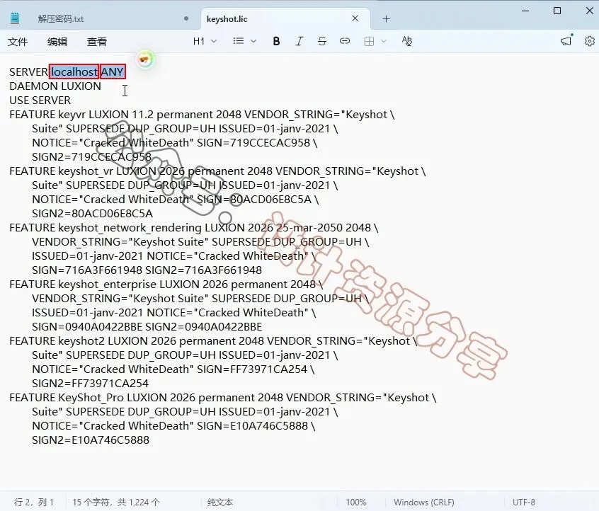 5、勾选【Install for…】,再点击【Next】 6、软件默认安装在C盘,可自定义更改软件安装位置,这里小编选择安装在D盘;点击【Next】 7、可自定义更改软件安装位置,这里小编选择安装在D盘;再点击【Install】 10、回到KeyShot 2026文件夹,找到【Crack】文件夹,右键【打开】它 11、找到【Luxion_License_Server】文件夹,再右键点击【复制按钮】 12、打开【本地磁盘C】,右键文件夹的空白处,点击【粘贴按钮】 13、找到粘贴的【Luxion_License_Server】文件夹,右键【打开】它 14、找到【keyshot.lic】文件,再右键点击【在记事本中编辑】 15、找到【localhost】和【ANY】这串内容 16、找到【lmtools】程序,右键选择【以管理员身份运行】它 17、到【keyshot.lic】文件界面,将【Computer/Hostname】内容替换【localhost】,再将【Ethemet】内容替换【ANY】 18、依次点击【文件】、【保存】,再点击右上角【关闭按钮】 19、回到【Luxion_License_Server】文件夹,找到【server_install】程序,右键选择【以管理员身份运行】它 21、回到安装包内的Crack文件夹,找到【ksystemutil.dll】和【ksystemutil_gui.dll】文件,右键点击【复制按钮】 22、回到桌面,右键桌面上的【KeyShot 2026软件图标】,点击【打开文件所在的位置】 25、回到桌面,右键桌面上的【KeyShot 2026软件图标】,点击【打开】 30、输入框内输入:@localhost,点击【连接】 33、以上就是 KeyShot 2026 软件安装的全过程,要是对你有帮助的话,请为小编点个赞!