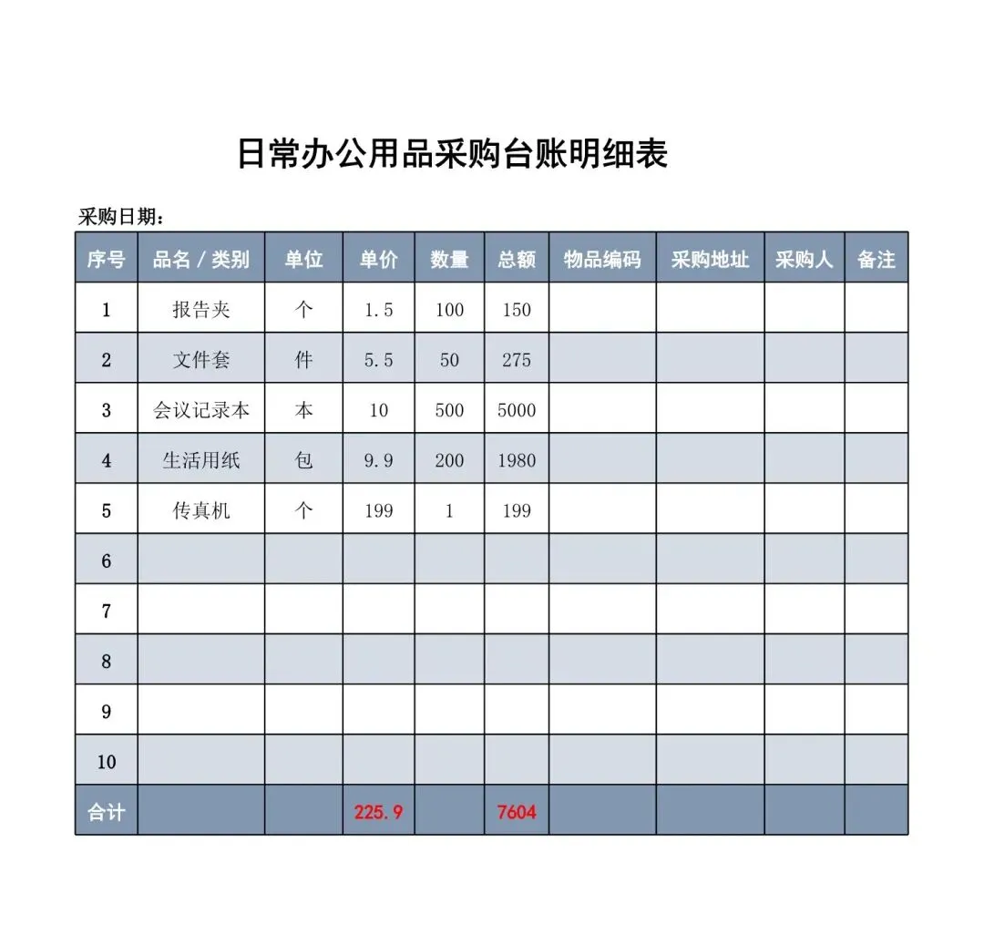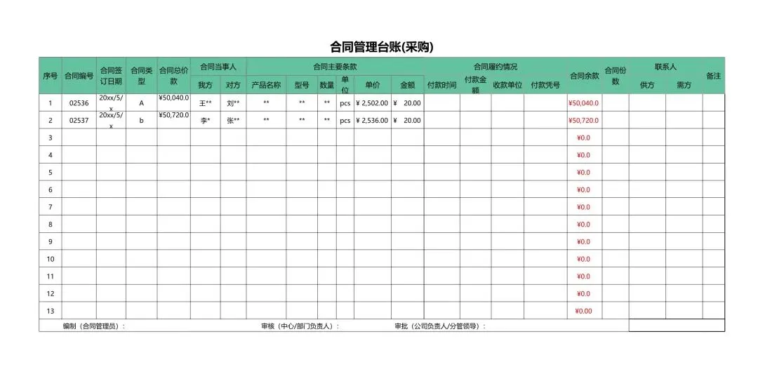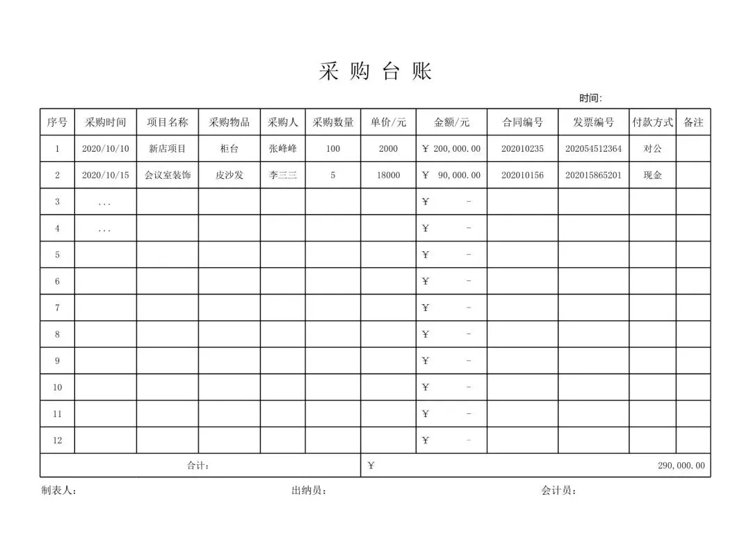 回复关键词“采购管理台账”领取!