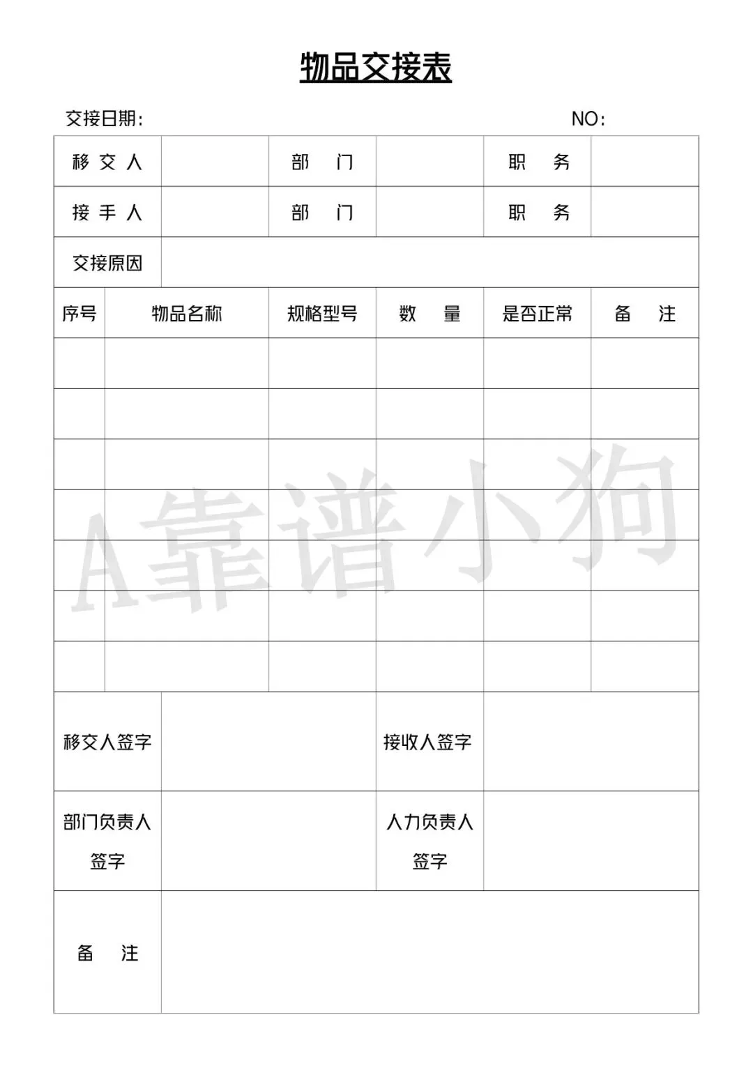 回复关键词“物品交接表”领取!