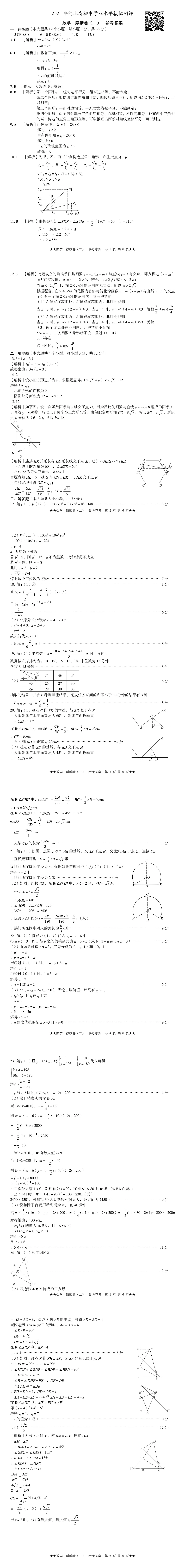 25年数学麒麟卷 二 含答案 无水印可打印初中 高中