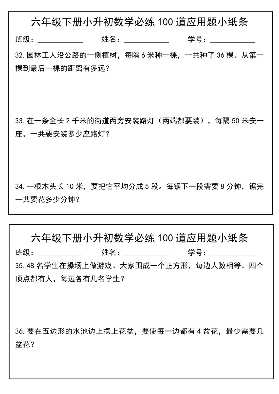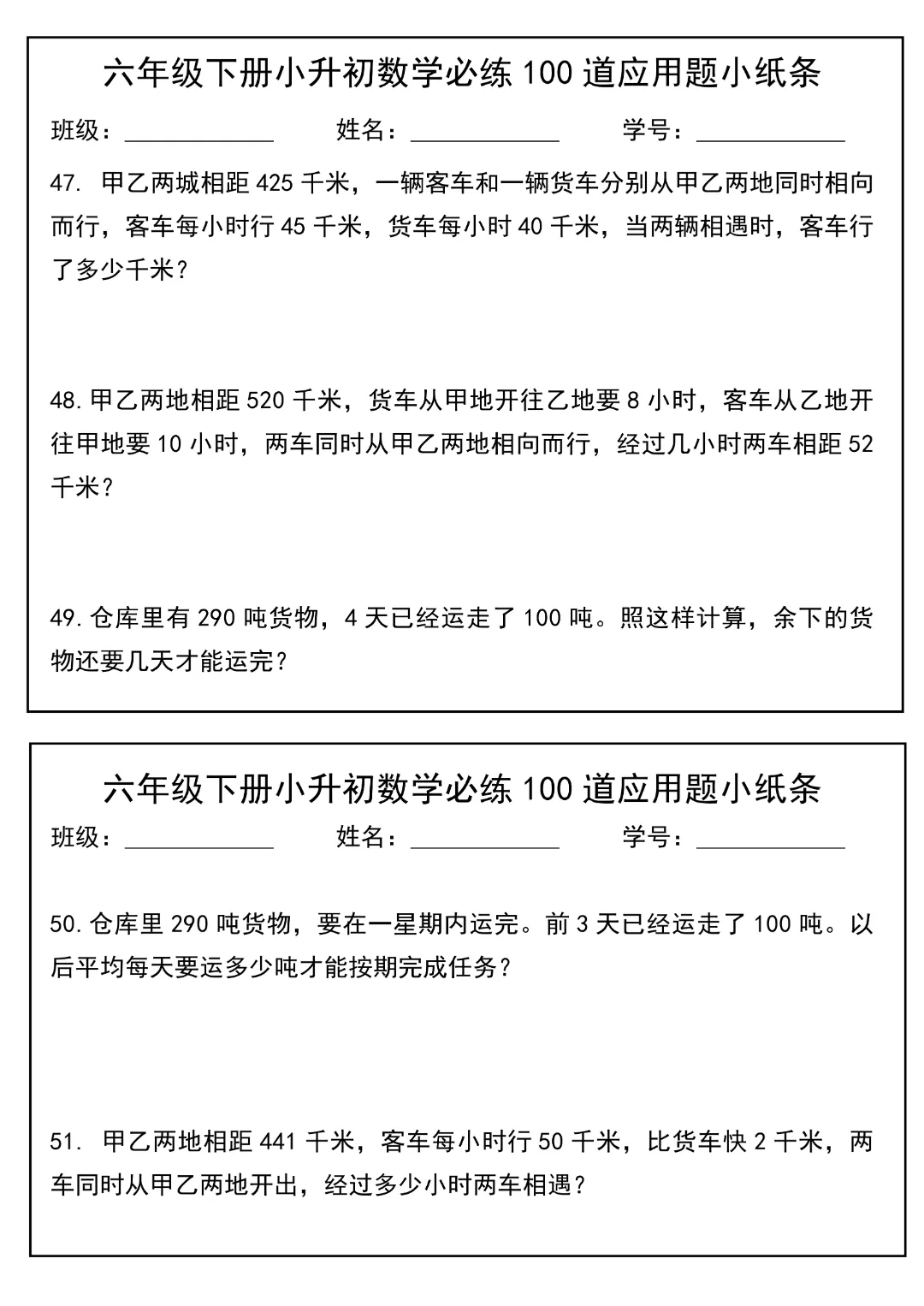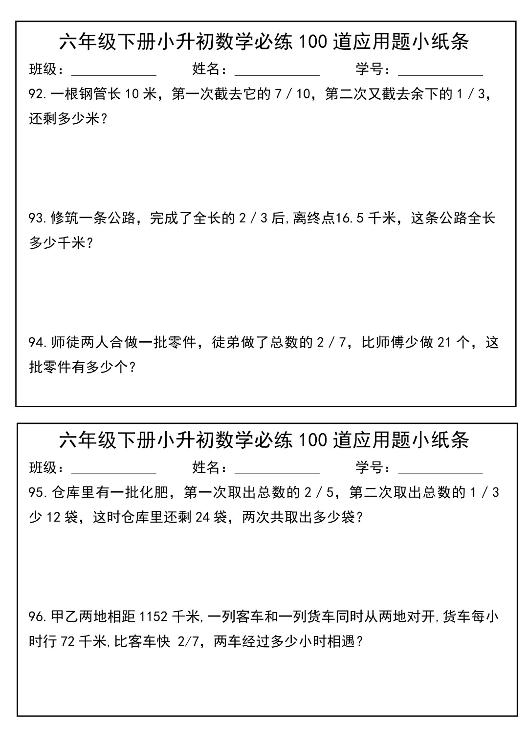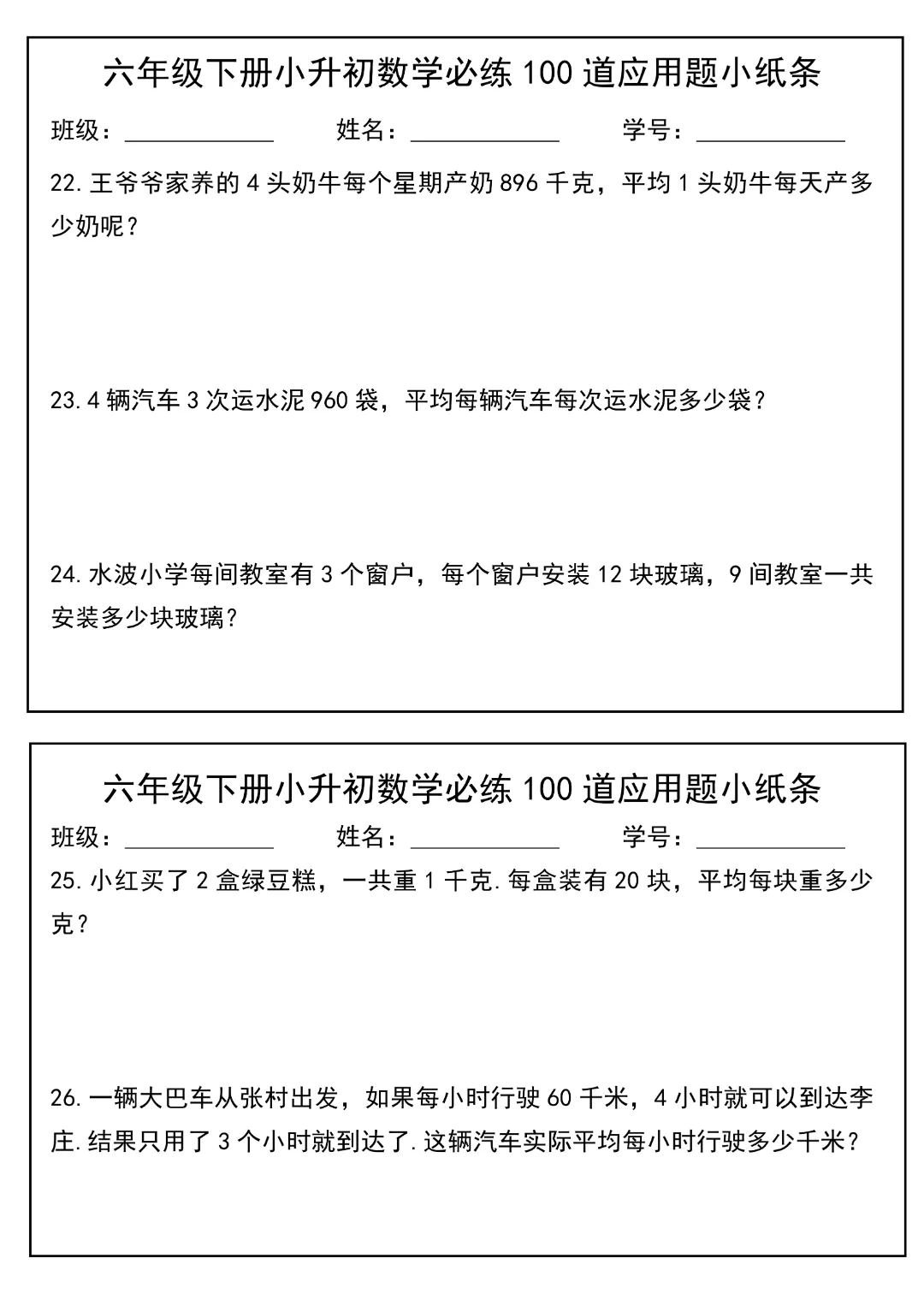 今天给大家分享的是:2026春新版六年级下册数学【通用版】【小升初每日必练100道应用题小纸条】丨完整高清电子版可打印