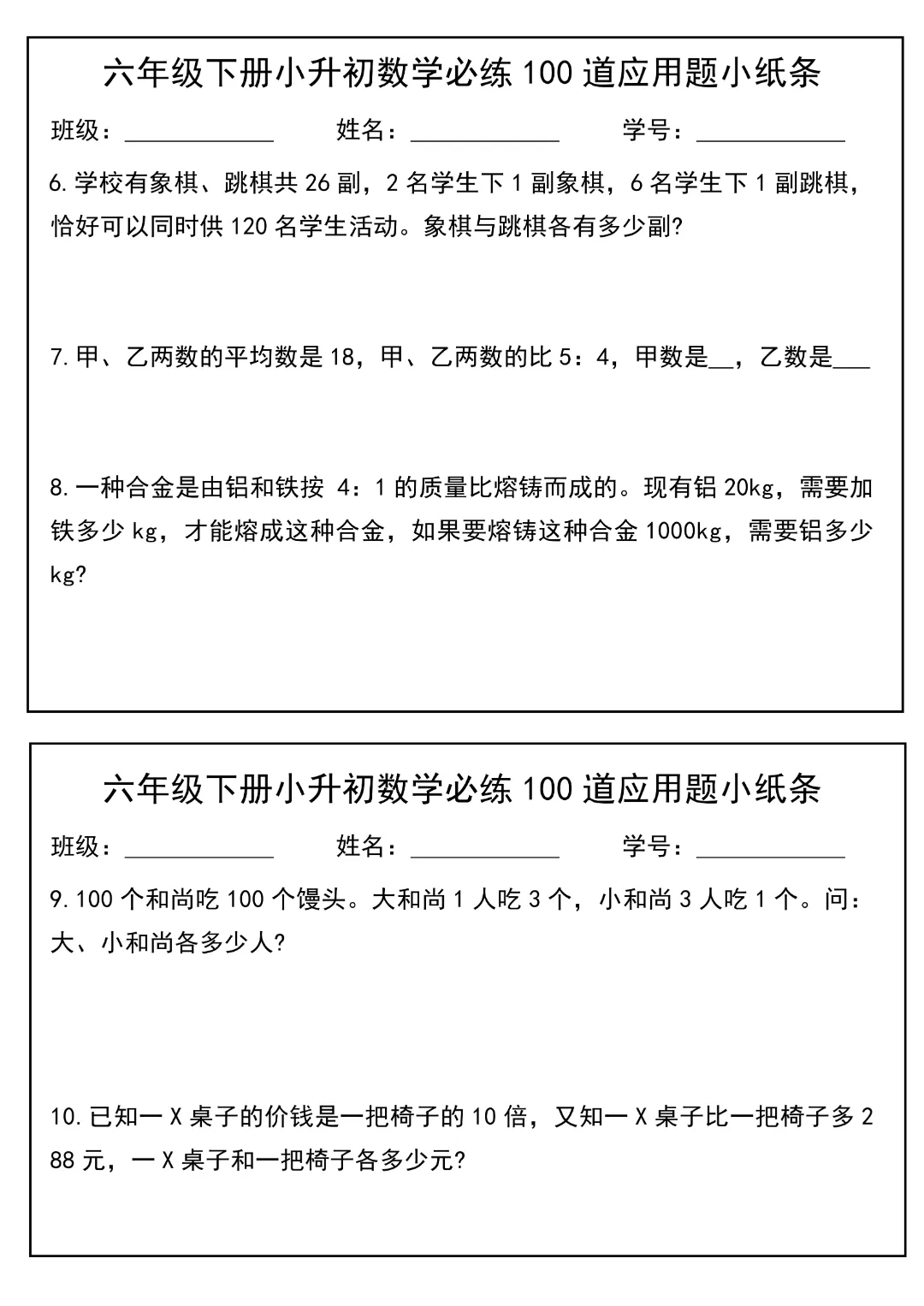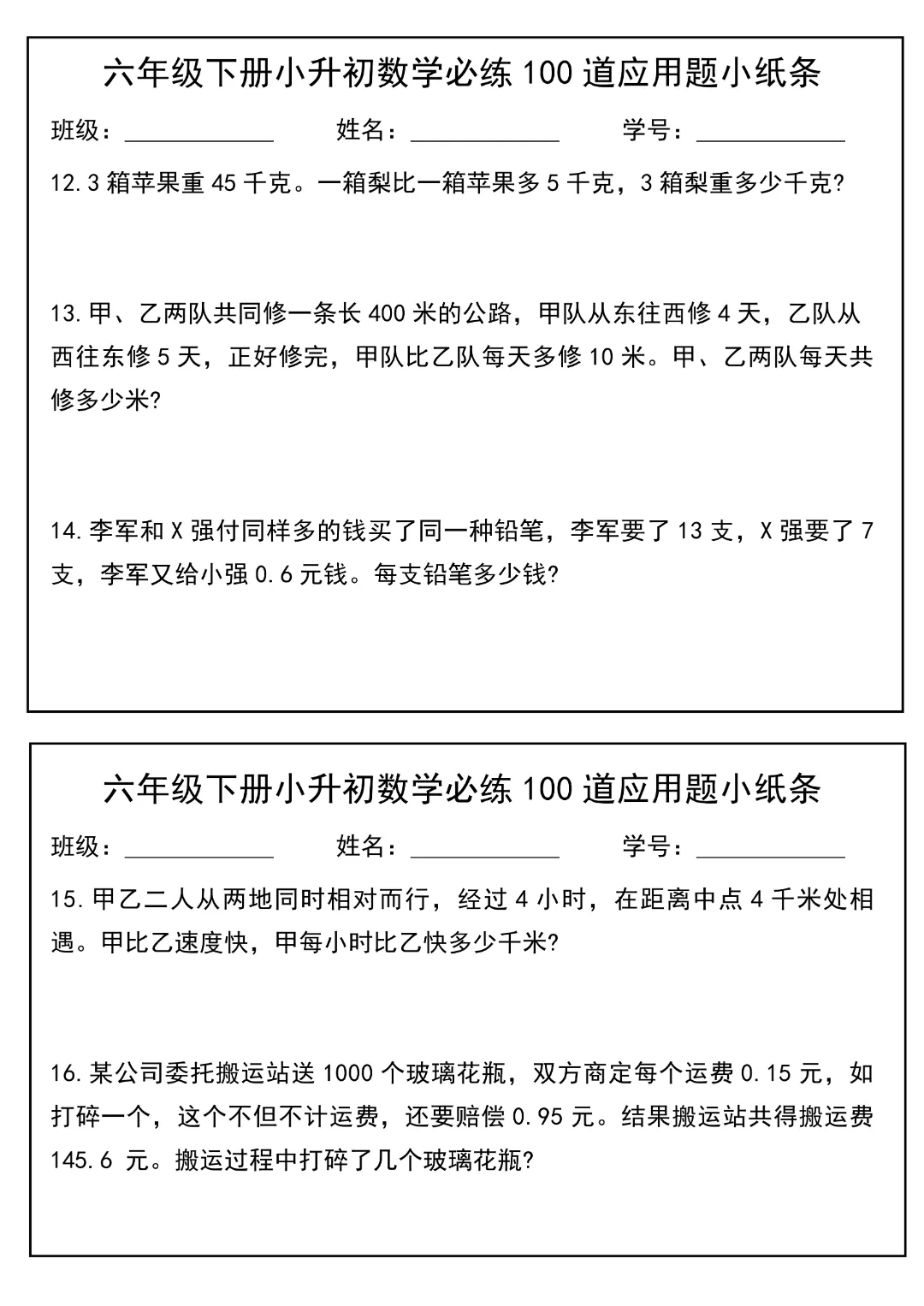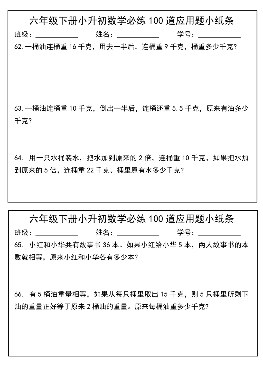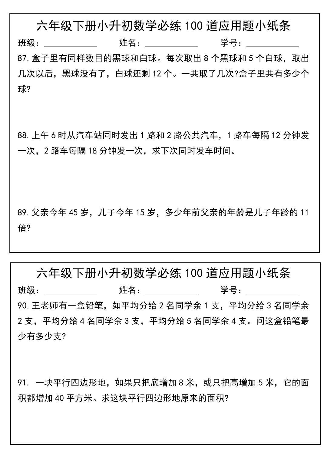 今天给大家分享的是:2026春新版六年级下册数学【通用版】【小升初每日必练100道应用题小纸条】丨完整高清电子版可打印