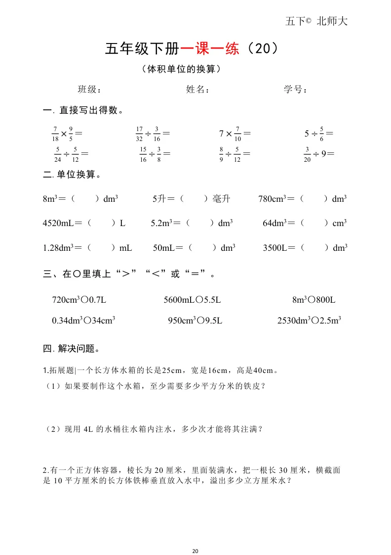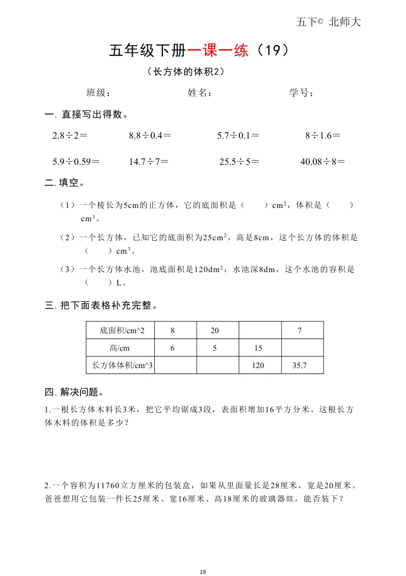 26春五年级下册北师大版数学《口算、竖式计算每日一练》(共50页)高清可打印具体看完整PDF文件(温馨提示:文末有完整电子版领取方式)文件名北师大)五下数学每日一练50页完整pdf 50 页△因篇幅有限,只展示部分资料截图△↓↓↓