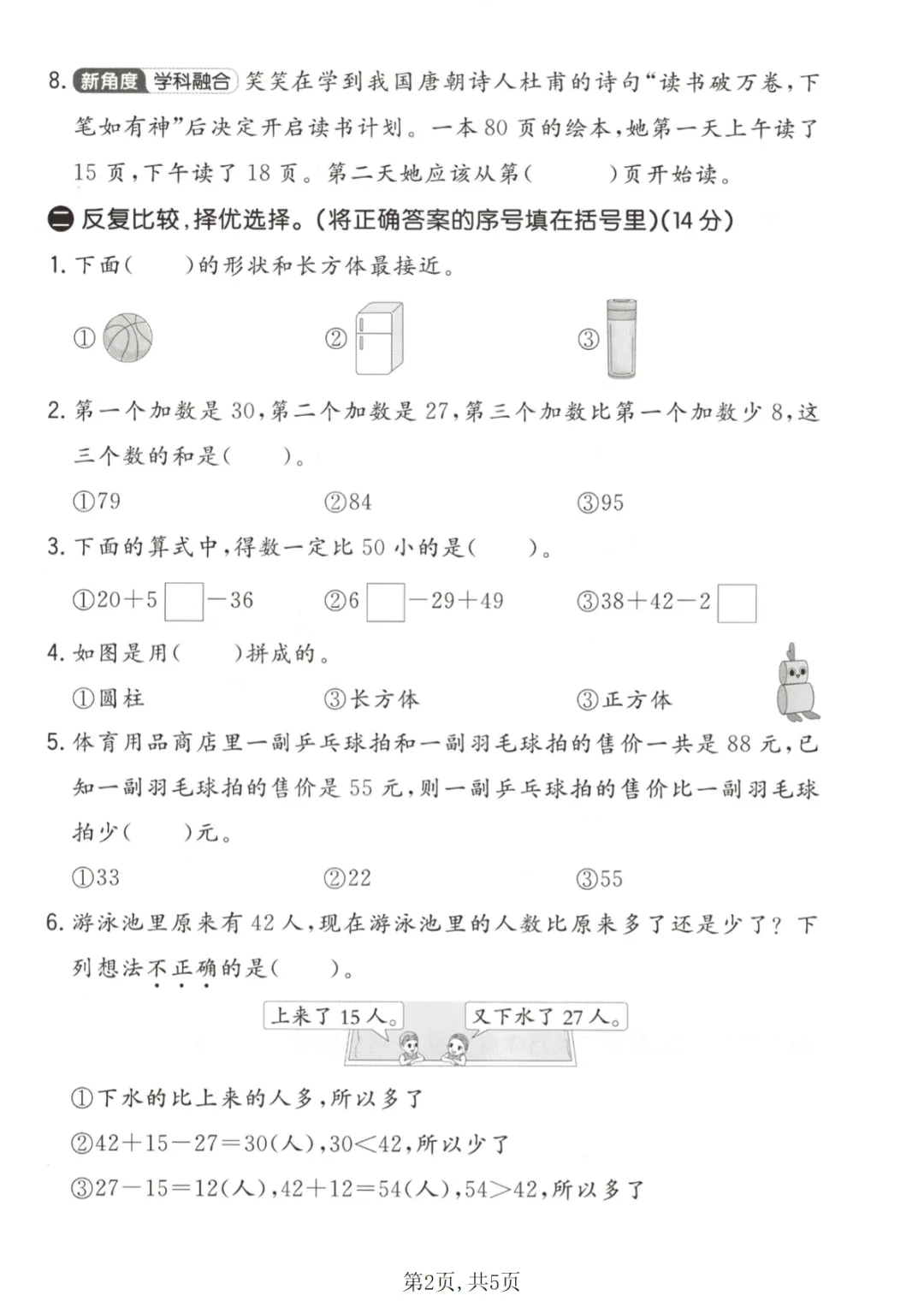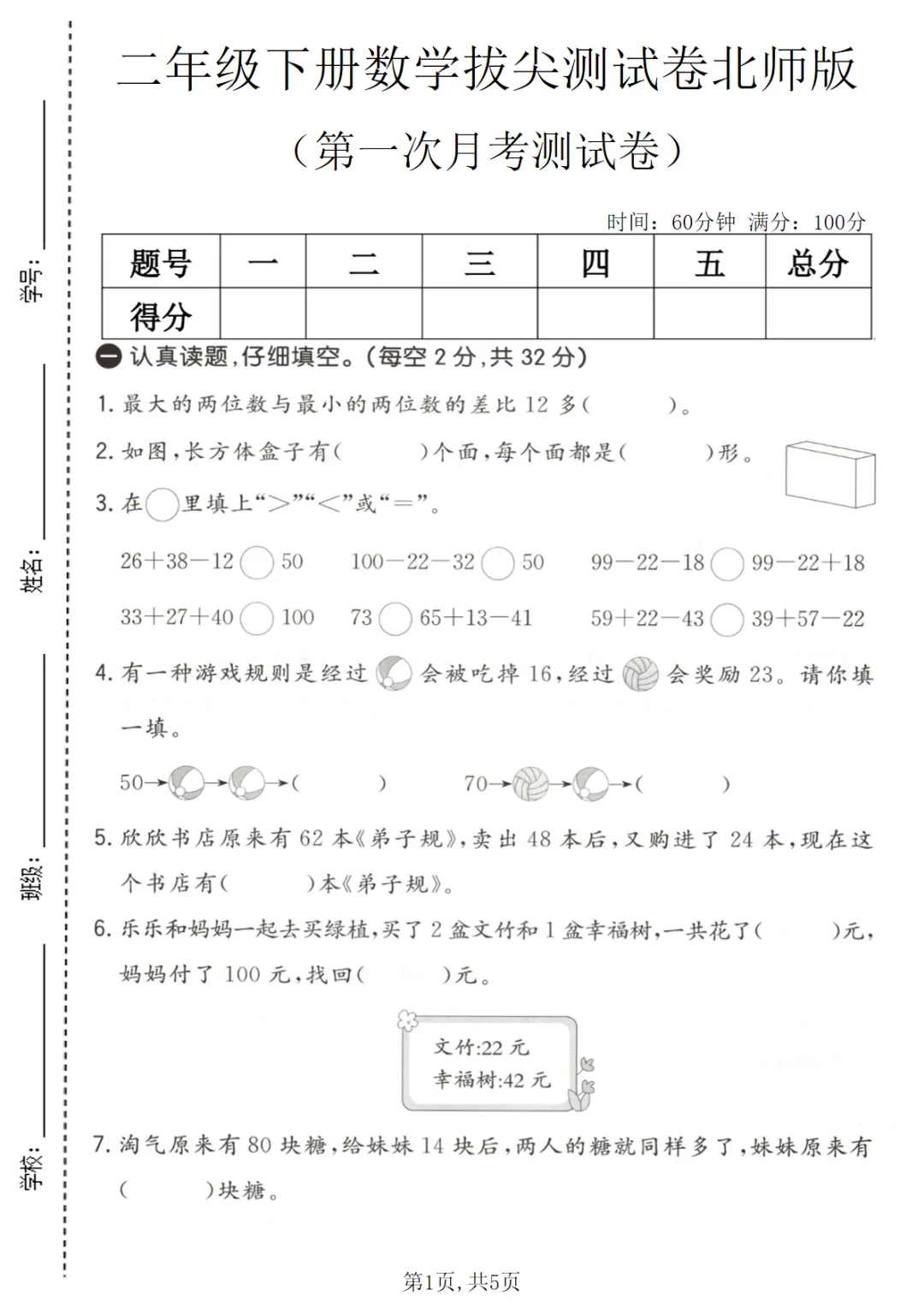 二年级(下)数学 第一次月考拔尖测试卷《北师版》