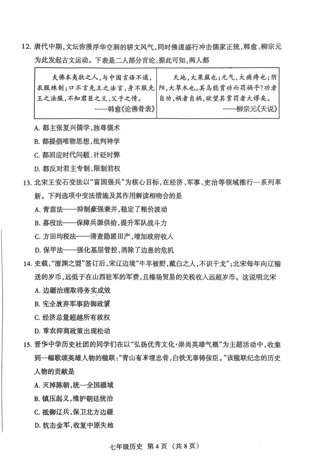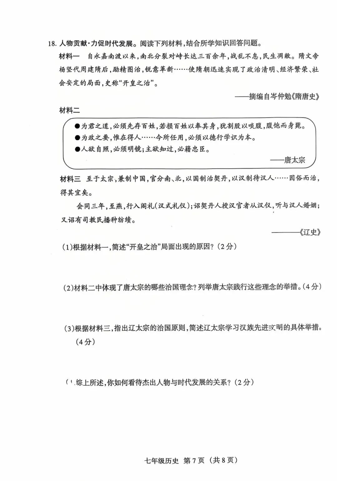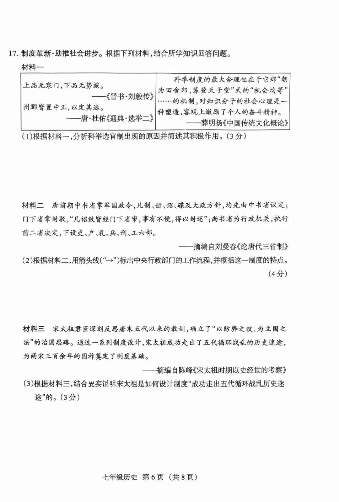 2026年太原市七年级期中测试历史试卷电子版及答案