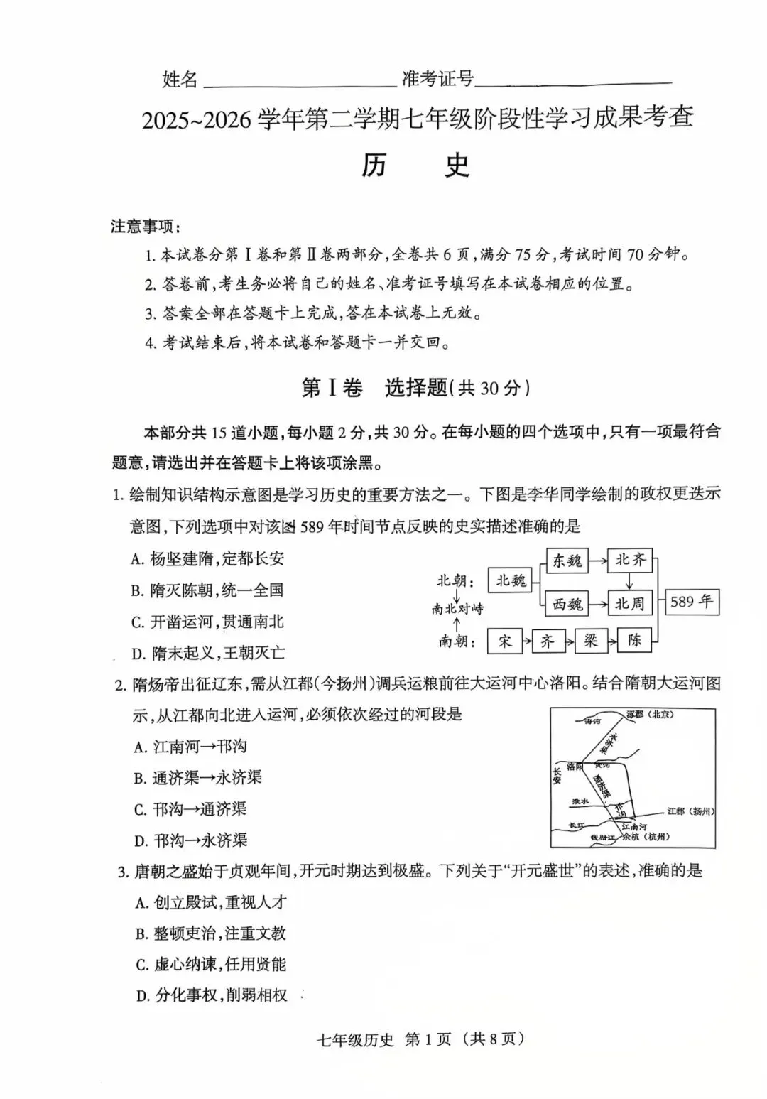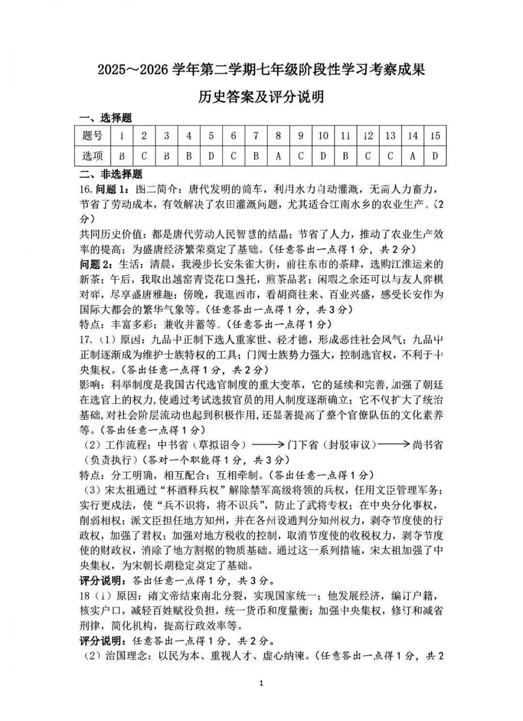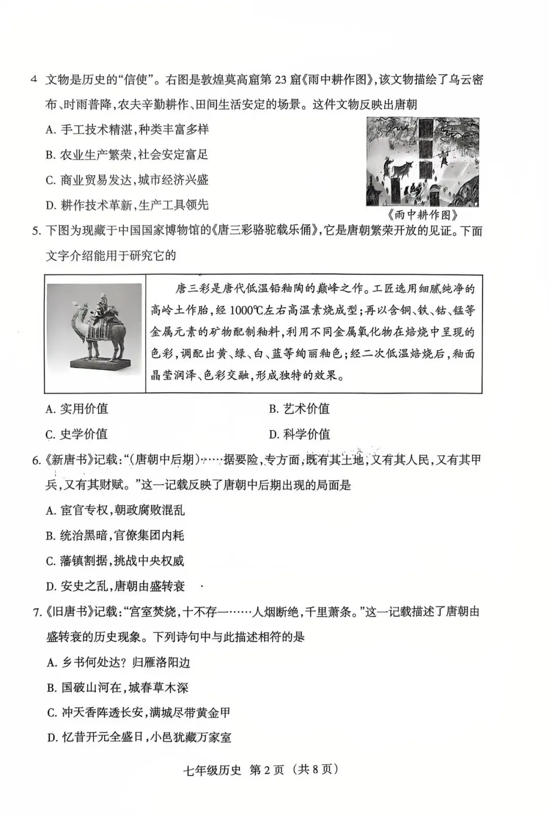 2026年太原市七年级期中测试历史试卷电子版及答案