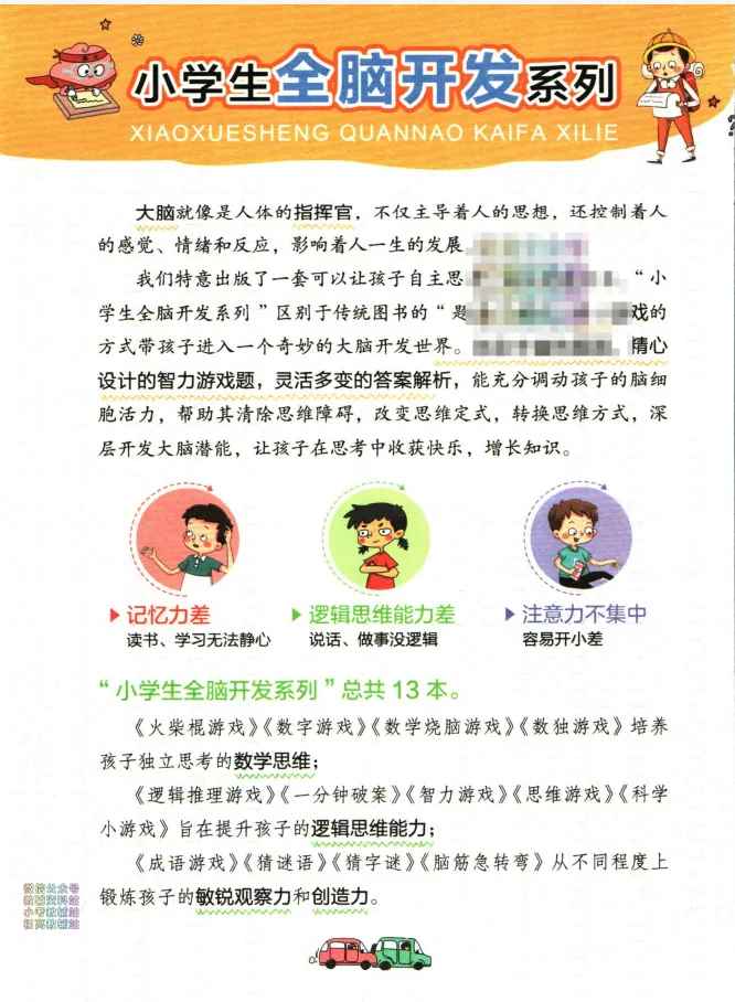 《小学生全脑开发系列》的核心价值,从来不是短期的知识灌输,而是通过科学、系统、趣味的训练,培养孩子受益终身的学习能力与思维品质。长期坚持训练,不仅能有效提升孩子的专注力、记忆力、逻辑推理能力与创新思维,更能帮助孩子建立主动思考、勇于探索的学习习惯,让孩子从被动接受知识,转变为主动探索世界,为小学阶段的学业成长,乃至未来的终身学习,打下坚实的思维基础。