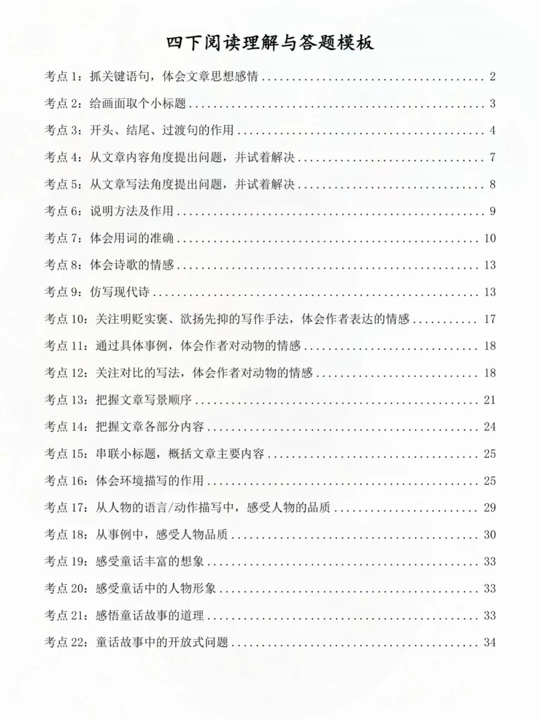 四年级下册语文常见阅读理解题型+答题模板及技巧(有答案)配专项练习,可打印大家好,我是冯婉妈妈,今天分享的是;四年级下册语文常见阅读理解题型+答题模板及技巧,关注我,每天持续分享更多的优质学习资料。 温馨提示;因篇幅有限,仅展示部分内容(文末有完整版电子版领取方式)完整电子版:①:在公众号对话框中回复:4256(不是在“留言”中发数字)