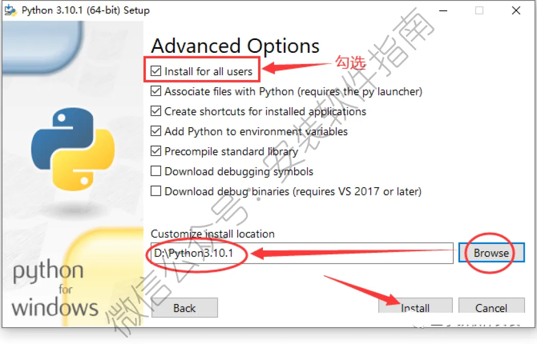 6、勾选 Install for all users,点Browse选择安装位置,然后点Install