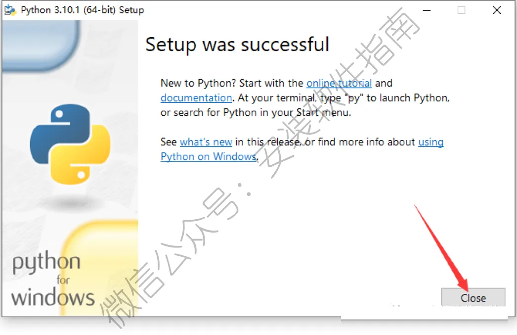 12、显示当前python版本为3.10.1则表示安装成功,关掉这个界面即可。