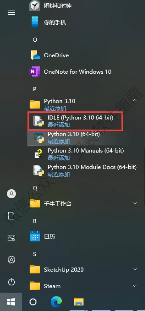 13、快捷方式图标不会自动出现在桌面,需要自己找出来。打开开始菜单,找到 IDLE (Python 3.10. 64-bit),左键按住,拉到桌面即可。
