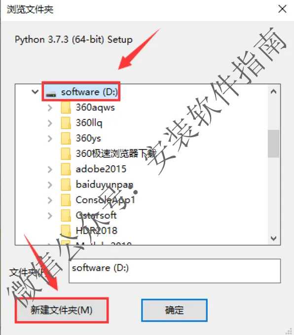 9、将文件夹命名为【Python3.7.3】,然后点【确定】