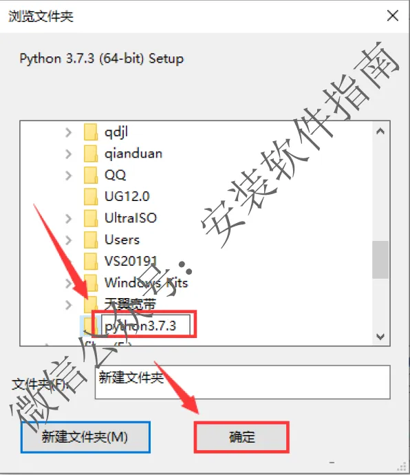 9将文件夹命名为【Python3.7.3】,然后点【确定】