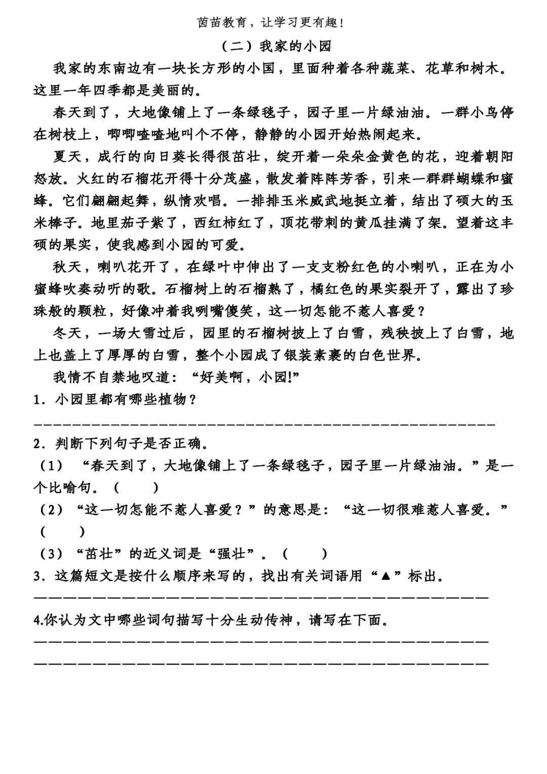 二、1.向日葵、石榴、玉米、西红柿、茄子、黄瓜、喇叭花