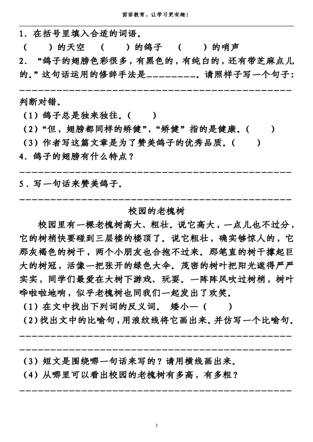 期中复习:三年级下册语文课内阅读理解pdf下载