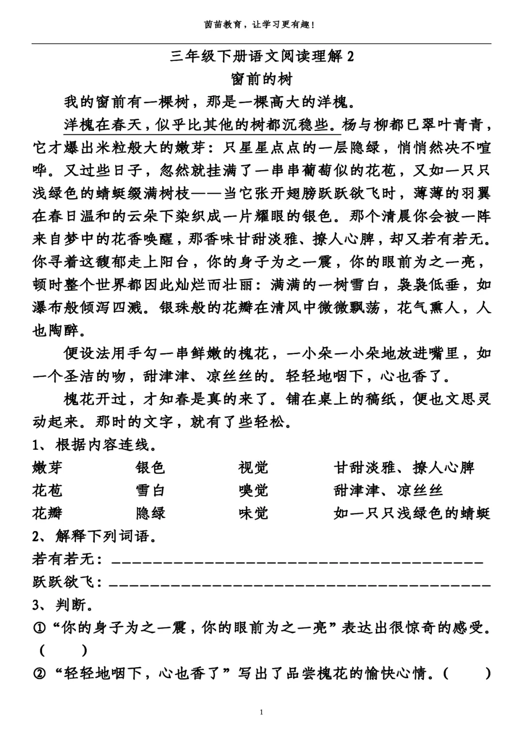 (4)时间 洋槐在春天里的长叶开花过程 作者对洋槐的喜爱之情