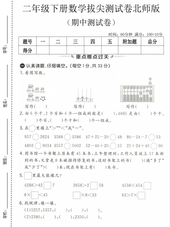 大家好,今天欣妈给大家分享的是:快要期中考试了,2026春二年级北师版数学期中模拟检测卷多套已发布,电子版可下载打印。通过这次测试能够查漏补缺,梳理知识点,总结做题方法,提升答题准确率,家长们给孩子打印出来,测试完成后对照答案,及时订正!