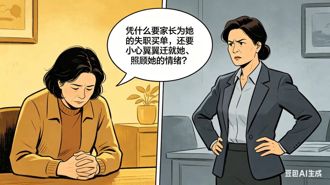 凭什么要家长为她的失职买单,还要小心翼翼迁就她、照顾她的情绪?