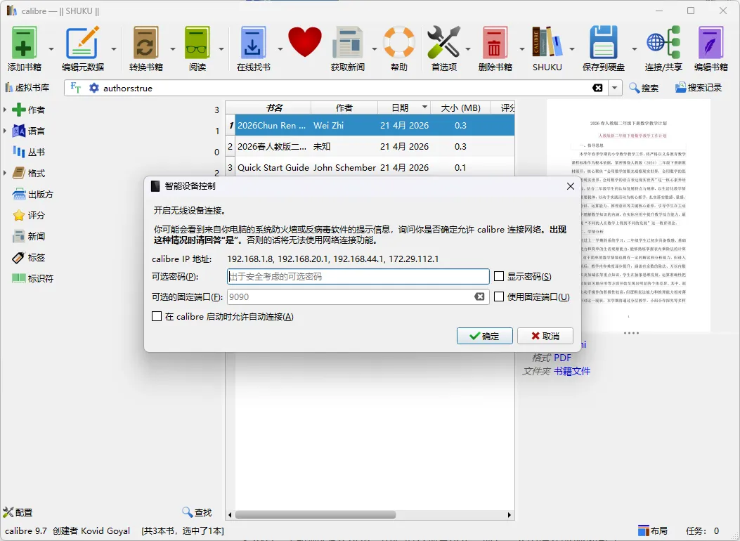 电脑上下载了一本书,看到一半如果想换到手机上继续看,得重新找资源,而Calibre 自带内容服务器功能。