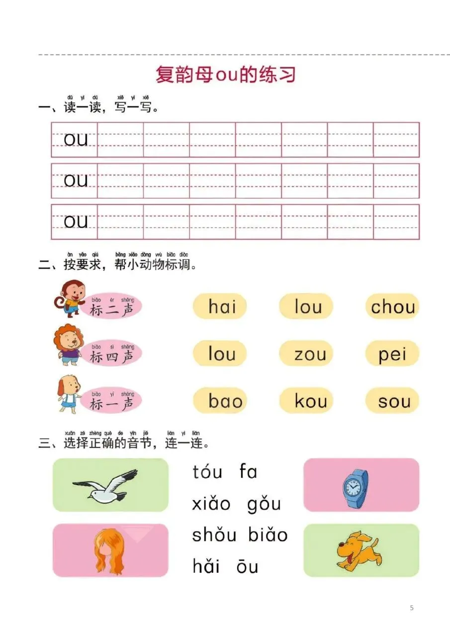 复韵母的练习电子版免费下载!
