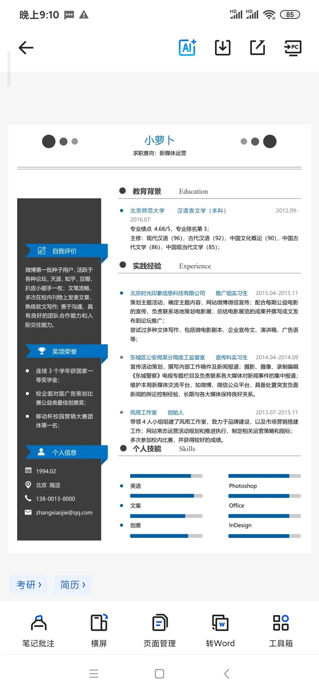 全套研究生复试专用简历素材,共计 124 份可编辑 PDF 文件,覆盖本科所有常见专业,无论是复试还是后续求职都能通用,下载打印就能直接上手。