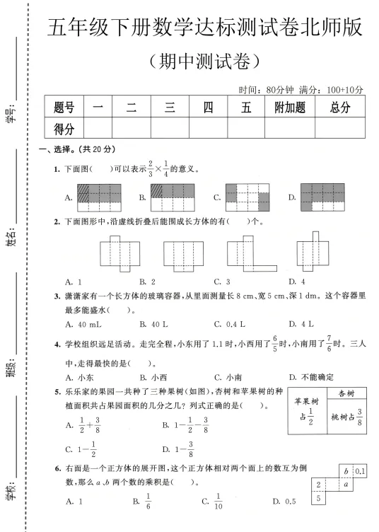 大家好,今天欣妈给大家分享的是:快要期中考试了,2026春五年级北师版数学期中模拟检测卷多套已发布,电子版可下载打印。通过这次测试能够查漏补缺,梳理知识点,总结做题方法,提升答题准确率,家长们给孩子打印出来,测试完成后对照答案,及时订正!