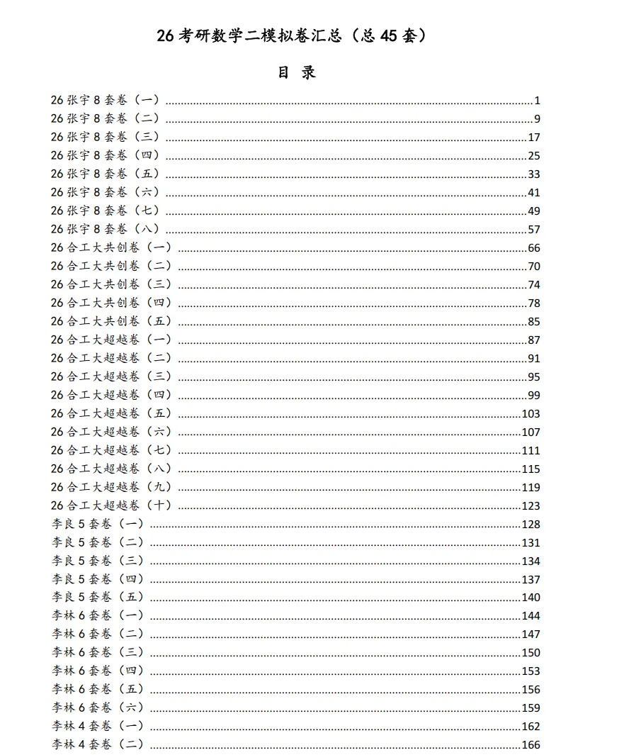 26考研数学模拟卷汇总合集45套(可打印)