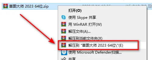 1.鼠标右键解压到“草图大师”