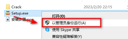 2.选中Setup,鼠标右击选择“以管理员身份运行”