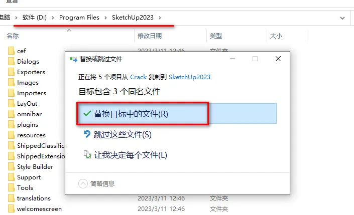 11.将刚刚复制的文件粘贴到软件安装路径下(第6步设置的路径),点击“替换目标中的文件”