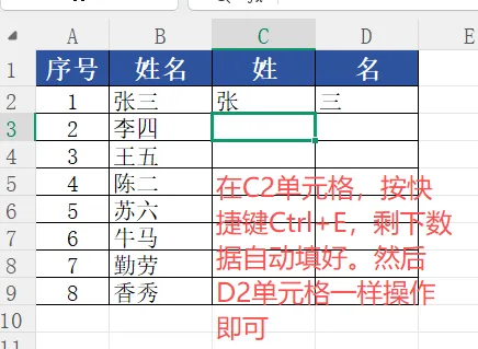 二、⚡ Ctrl+E:让Excel学会“抄作业”