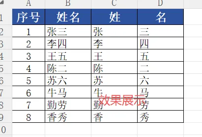 你只需要在旁边的单元格示范一行,比如把“张三”拆成“张”和“三”,