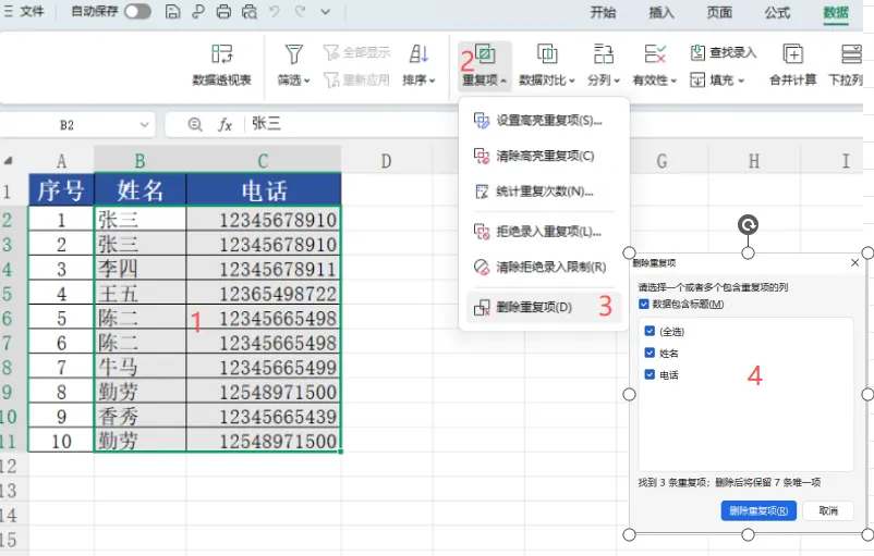 【选中数据 → 数据 → 删除重复项】,3 秒钟,清爽干净!
