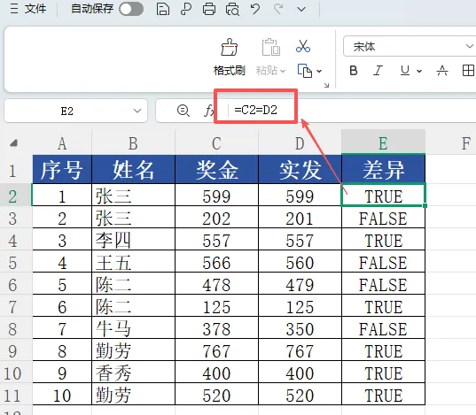 用这个简单公式,1秒找出所有差异:=单元格1=单元格2