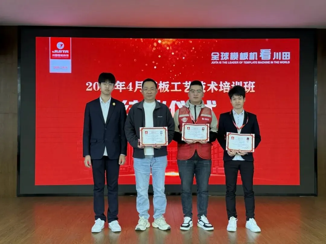 学有所获,术有所成!川田 4 月线下模板技术培训第69期模板工艺技术培训强化班、第58期模板工艺技术培训攻坚班今日顺利结业。感谢各位学员的全情投入,感谢讲师团队的倾囊相授。愿大家以本次培训为新起点,精进技艺、突破自我,把模板技术转化为企业提质增效的硬核力量。祝大家前程灿烂、事业长虹、一路繁花相送!