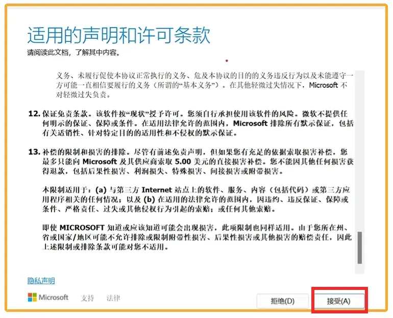二、下载完成后,双击运行MediaCreationTool Win11程序:查看许可条款,点击接受