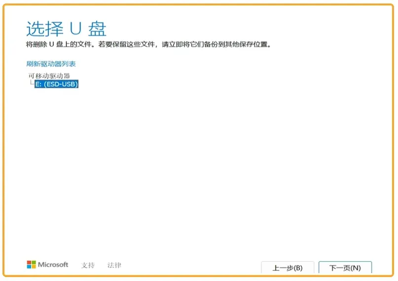 四、插入准备好的U盘如果没有显示,点击刷新驱动器列表,点击下一步,注意制作镜像会格式化U盘内的数据,请使用空U盘制作或将U盘内数据备份好