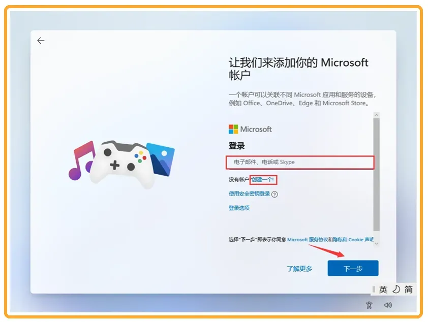 三、链接网络后,检查更新,登录微软账户,如无微软账户可点击注册微软账户。