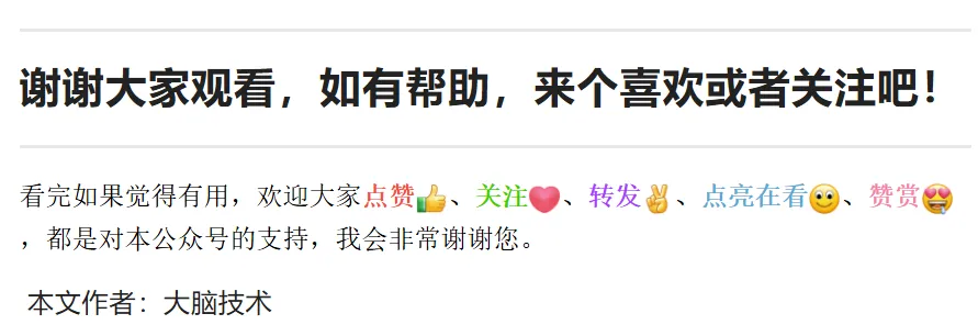 特别提示:公众号出于传递更多信息为目的仅供知识分享与自我学习、并致力于公益宣传,无任何商业用途。我们尊重原创,也注重分享。版权属于原作者如有侵权或不希望被转载,请及时联系,我们将在24小时之内删除。公众号注明“来源”或“转自”的作品均转载网络或自媒体,版权归原作者及原出处所有,所分享内容为作者个人观点,仅供读者学习参考,不代表本公众号观点,欢迎提出意见,惠赠作品。如果您觉得不错,请点击上方关注“大脑技术”公众号查看更多内容、转发点赞哦!