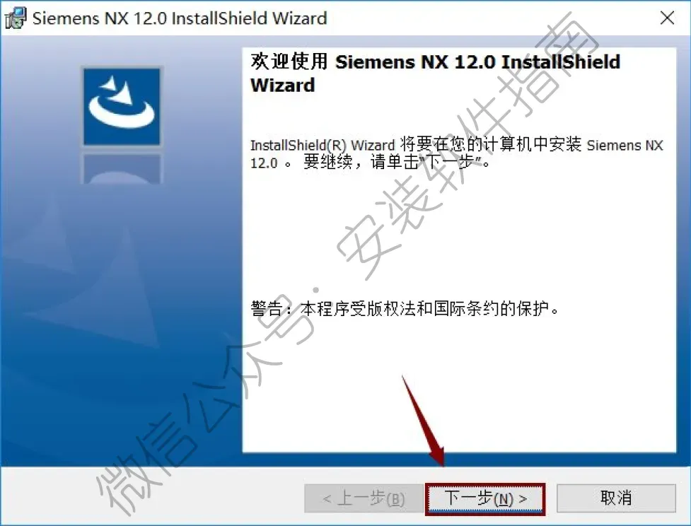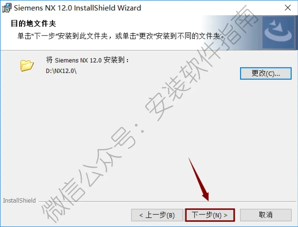 38.选择第11步中的NX12.0文件夹,点击“下一步”。