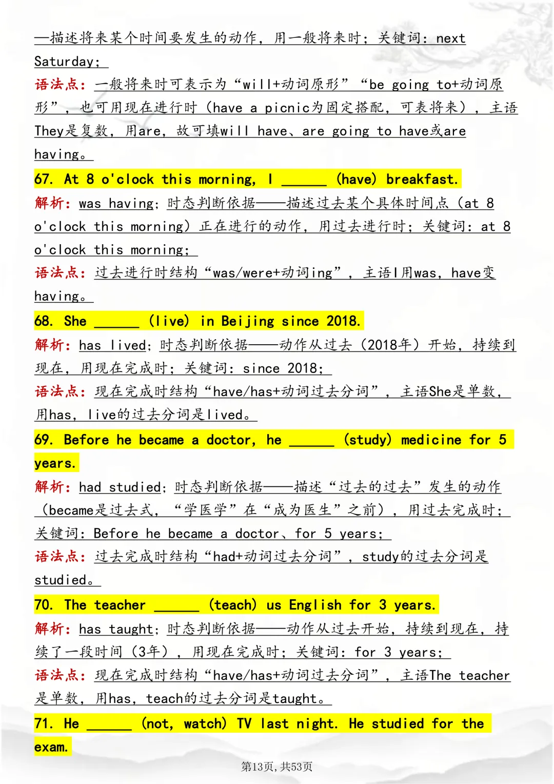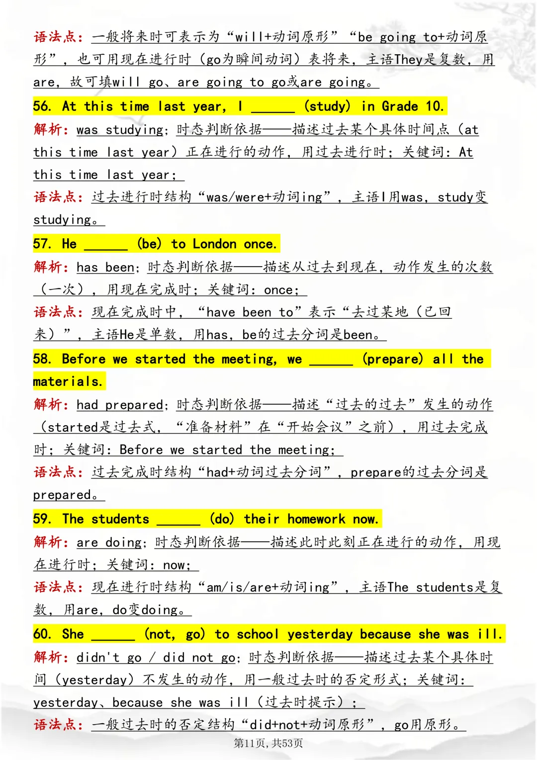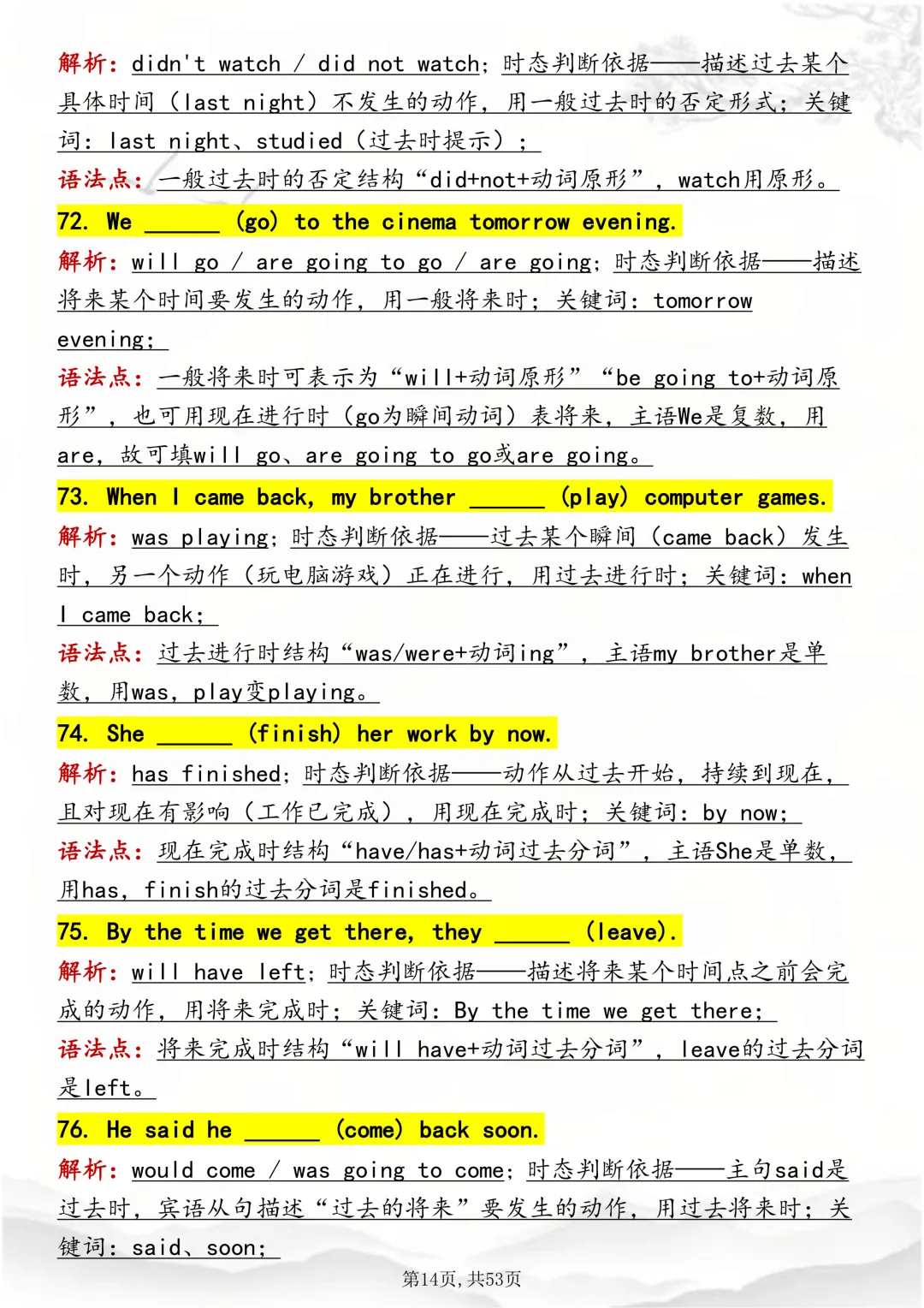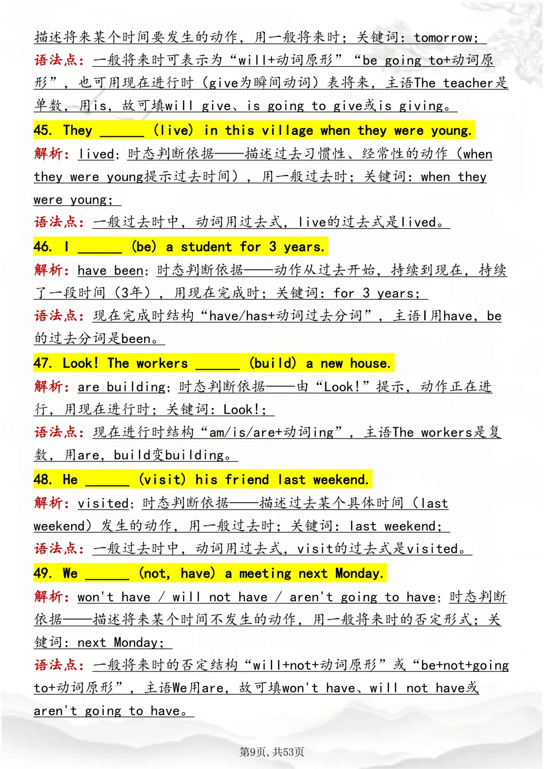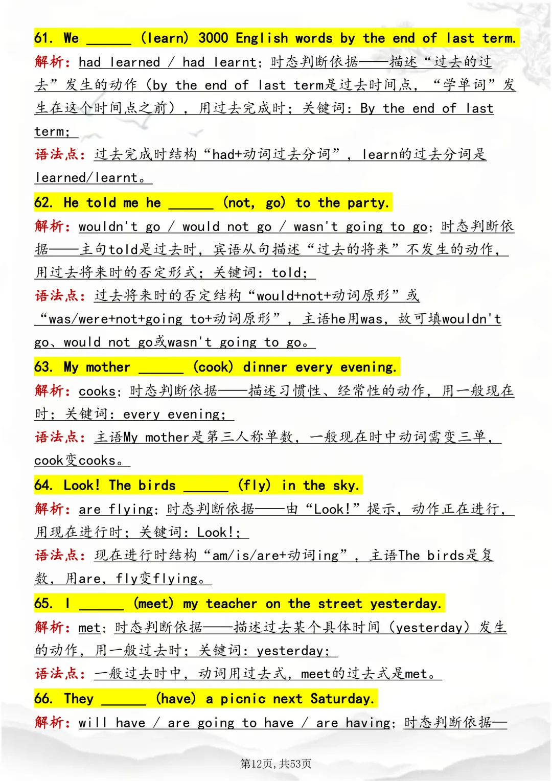 可打印,吃透英语“动词时态“,就靠这篇这篇文章啦!因篇幅有限,点击我的头像私信我回复“资料获取” 就可以领取 word 电子版。以下是部分资料内容,完整高清版的发送私信即可。本篇文章一共 53 页,完整版可打印↓↓↓