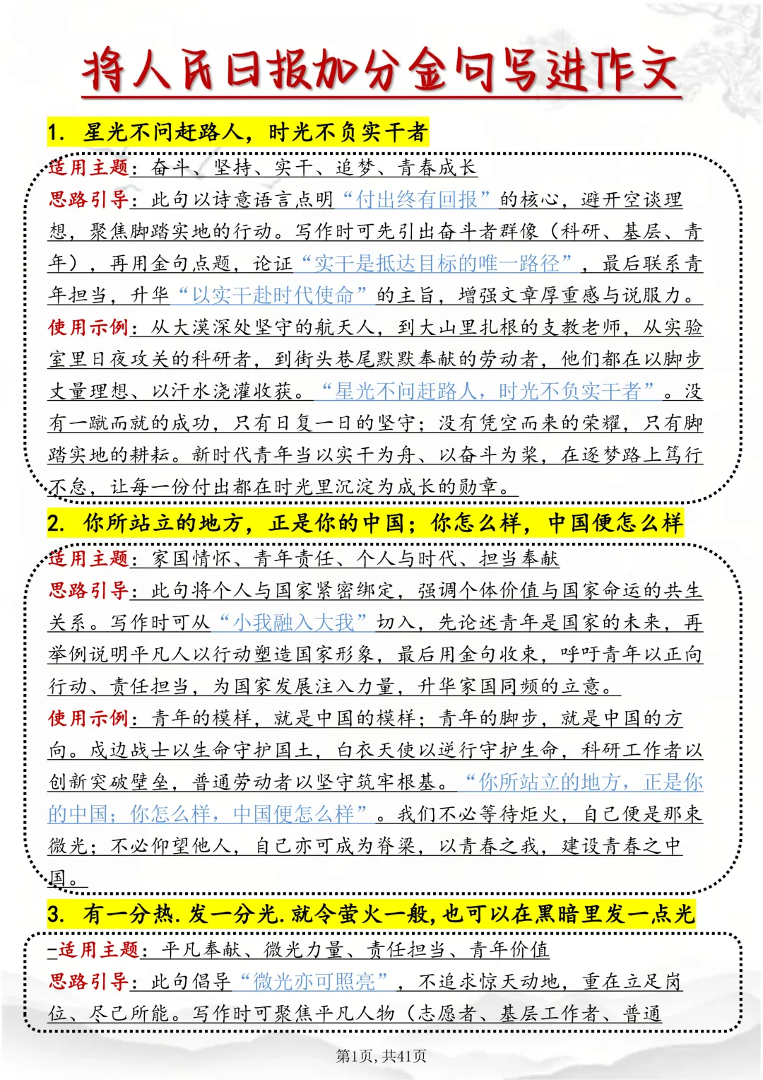 可打印,将人民日报的各类金句写进作文,高分不在话下!