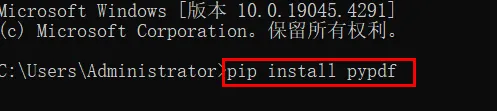 安装好python3.*版本,然后在命令窗口中安装pypdf库(输入如下命令按回车键):