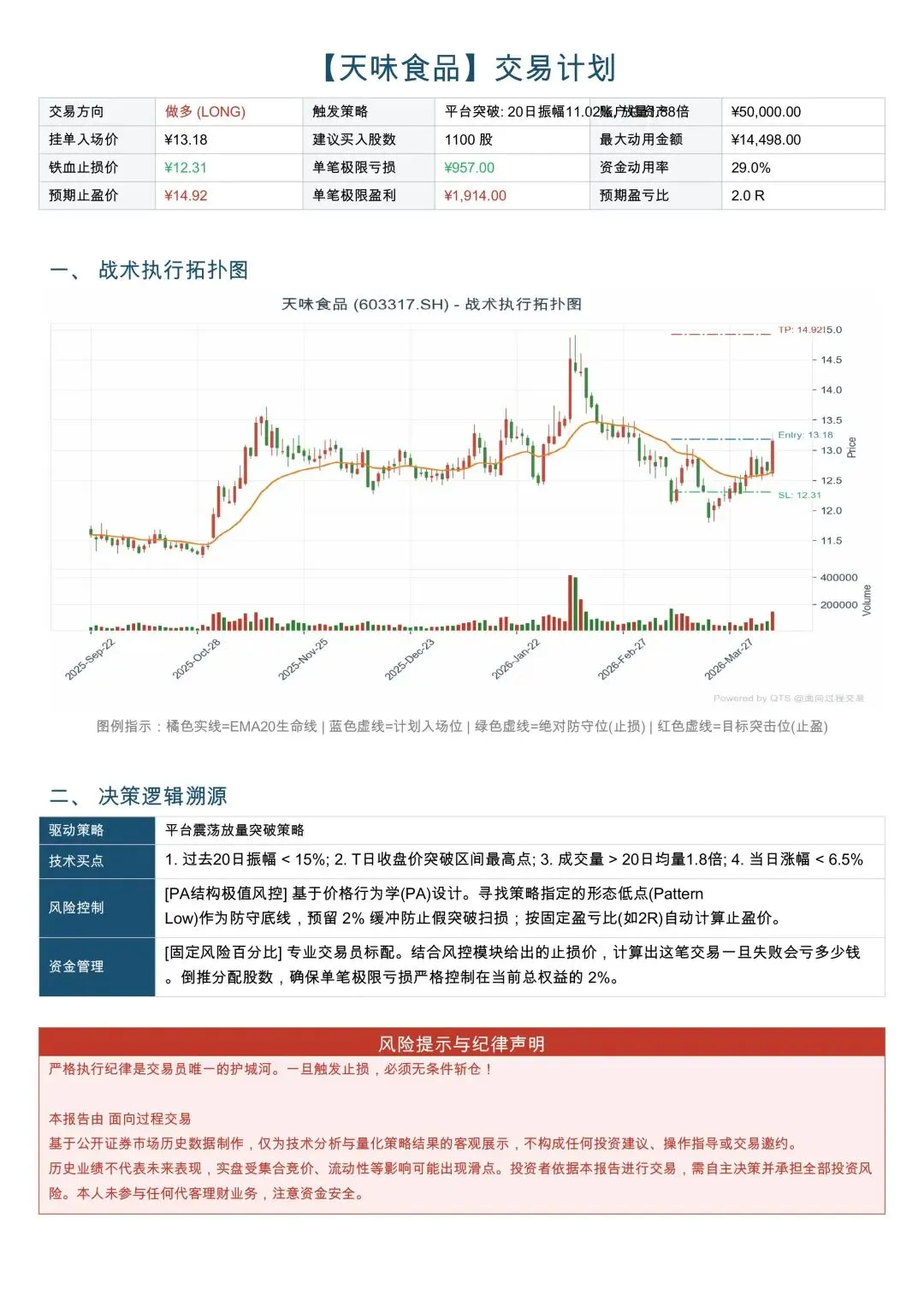 明确的目标:比如“鲁西化工 (000830.SZ)”。 铁血的挂单价:不是“逢低买入”,而是“12.48 元买入”。 精确的股数:不是“买两万块”,而是“买入 1800 股”。 止损与止盈:11.97 元止损,13.50 元止盈。