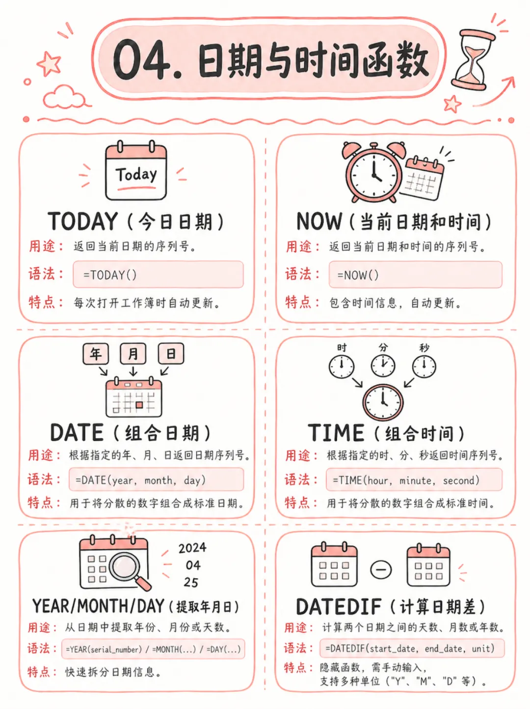 夜雨聆风 > > 办公文件 > 职场人Excel速查表:覆盖 4 大核心函数模块