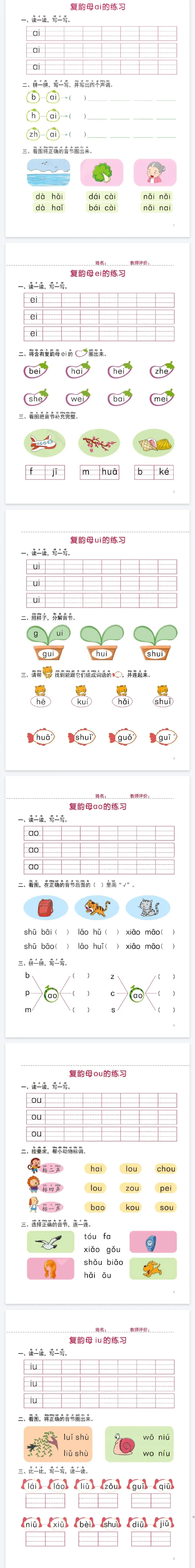 幼小衔接复韵母拼音练习(可打印)!共44页,免费分享
